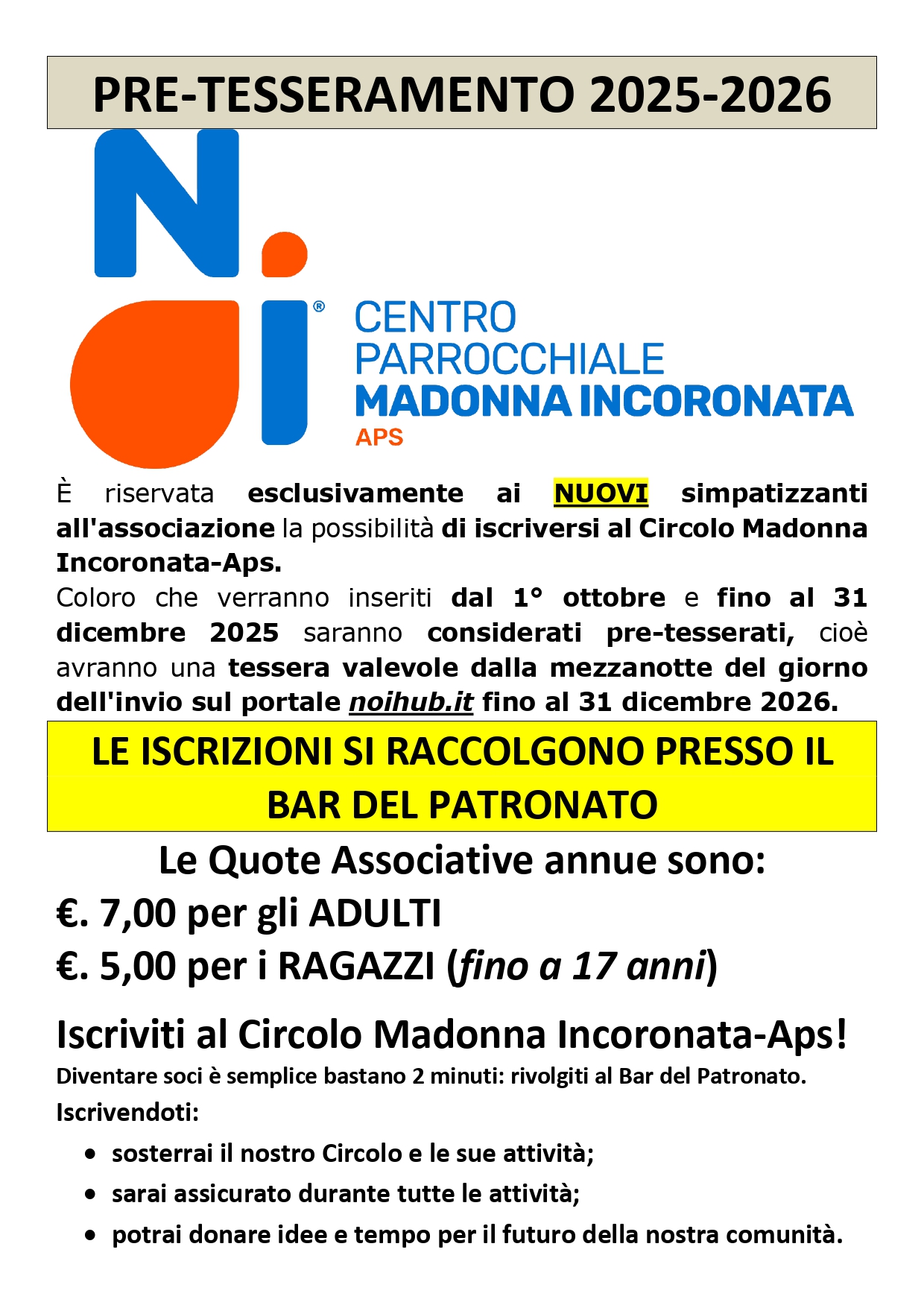 Iscriviti al Circolo Madonna Incoronata-Aps!